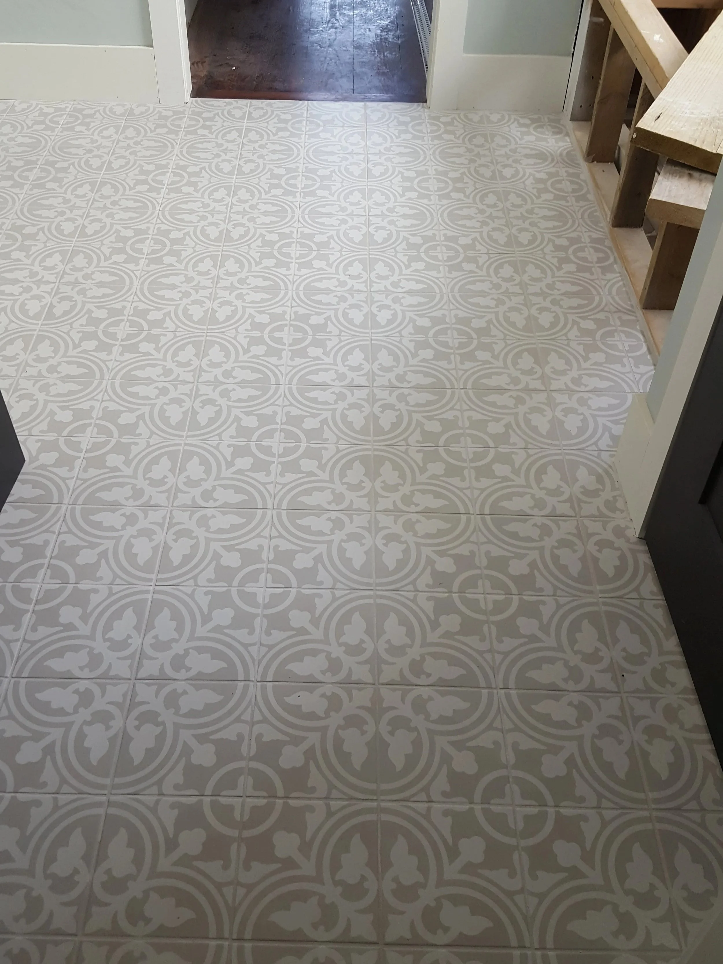Patterened tile over heated floor
